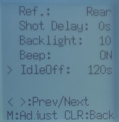 Funcția Shot Delay permite declanșarea unui temporizator de câteva secunde după care dispozitivul declanșează măsuratoarea. Se activează din meniu, iar declanșarea se face prin apăsare lungă pe tasta DIST.