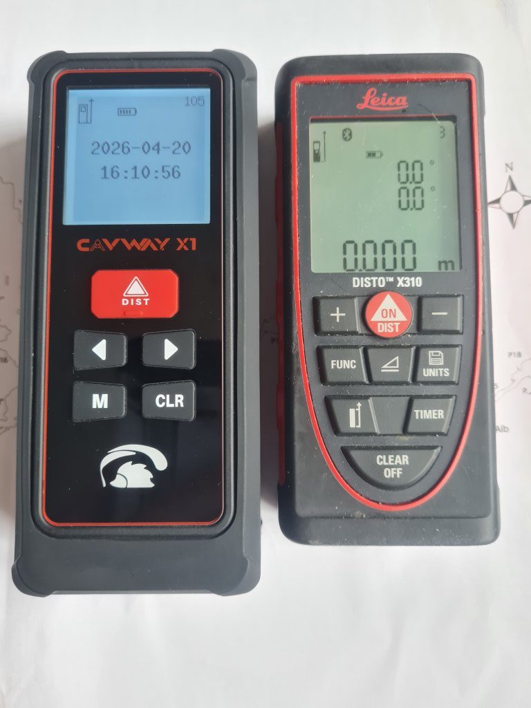 Comparativ, Cavway X1 este puțin mai mare față de un DistoX2 (131 × 55 × 33 mm vs. 122 x 55 x 31 mm) și are o greutate similară (145 g. vs 150 gr.). Sunt disponibile 5 butoane care au funcții diferite în funție de meniul accesat. Butoanele rezistă la 1000000 de apăsări. Carcasa rezistă la scufundare temporară în apă la o adancime până la 1 metru (grad IP67) și plutește pe apă.